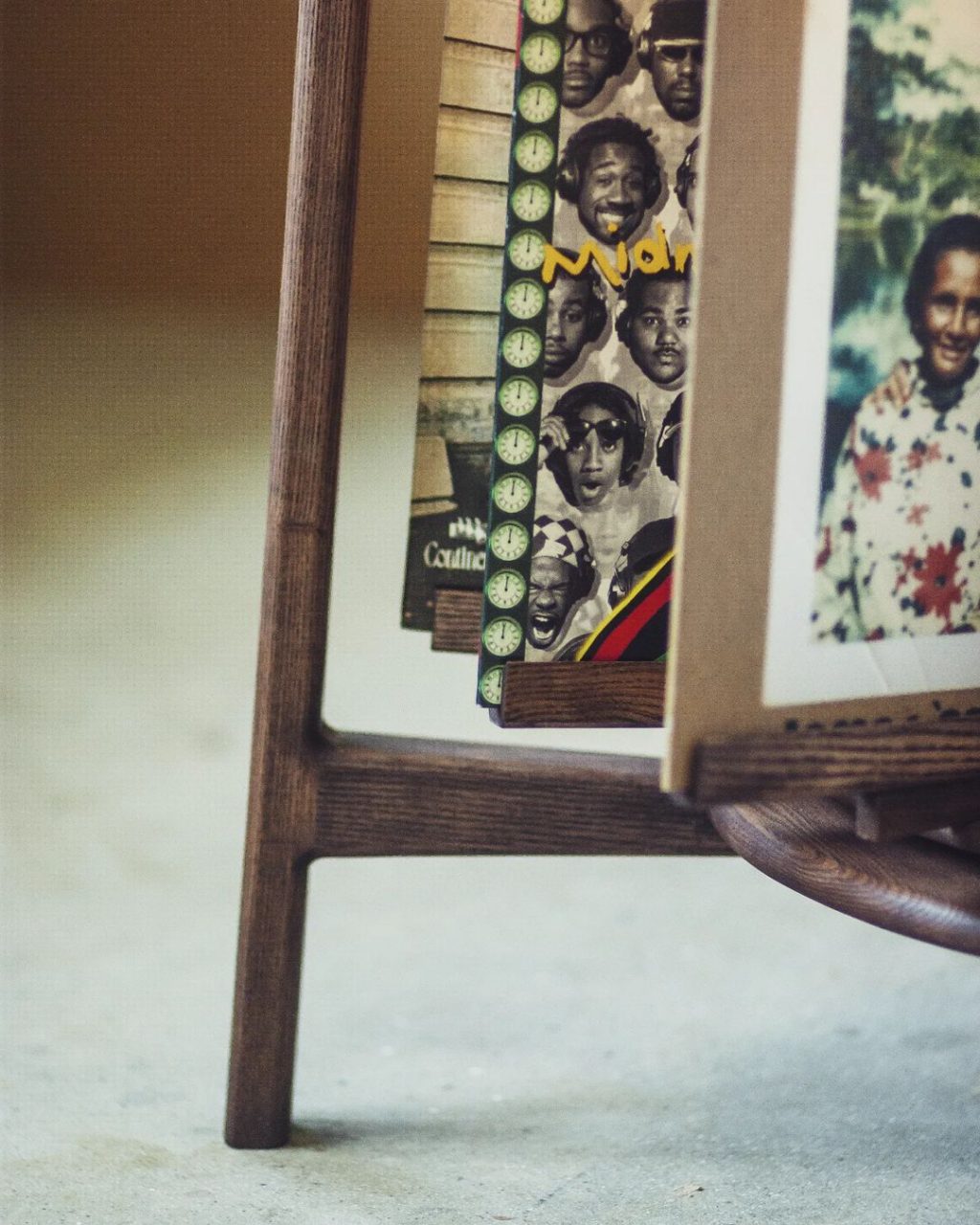 Ainsi, lorsque le meuble est éteint et ses plateaux alignés, il laisse oublier sa fonction de tourne-disque pour (presque) redevenir une table basse classique.
