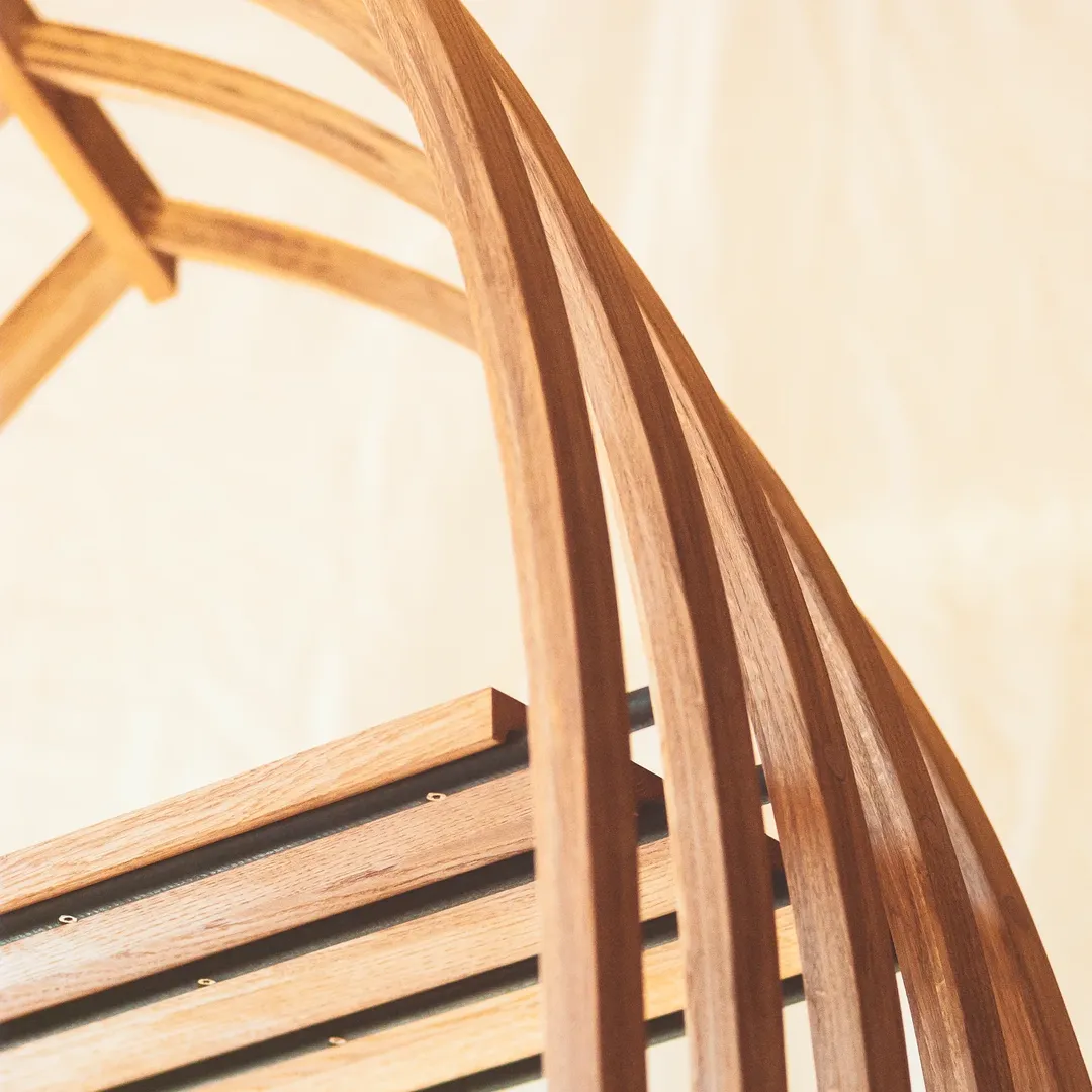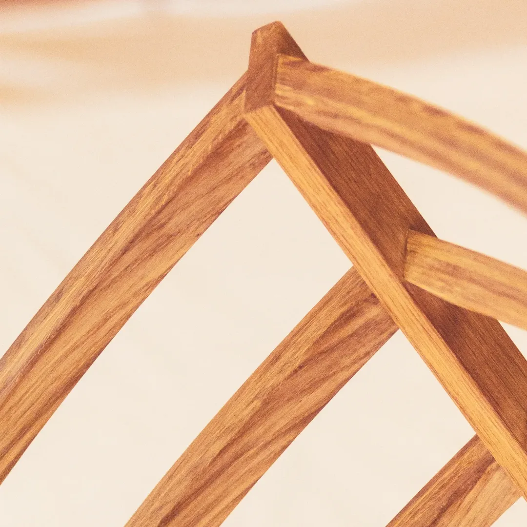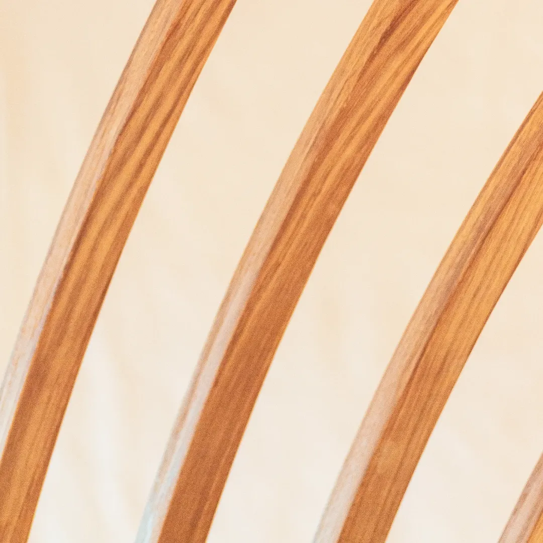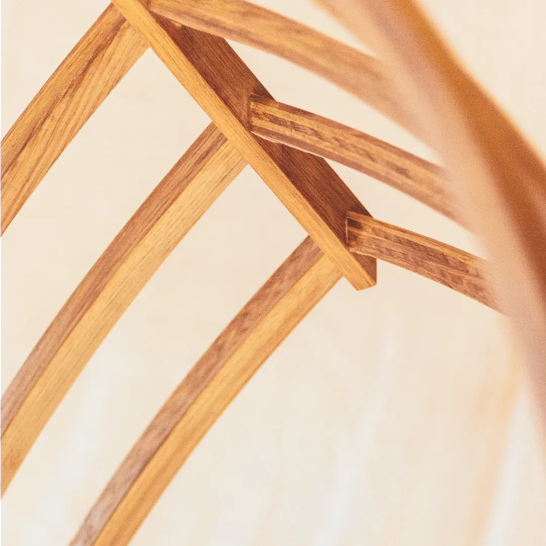 Détails des arcs de la « barque » : la partie supérieure du meuble est composée de dix arcs qui viennent se rejoindre sur « l’étrave », pièce centrale qui forme la proue de la barque. La fabrication de ces pièces fut le principal défi technique de ce projet car leur courbure doit être millimétrée pour que l’assemblage soit possible et qu’il dure dans le temps.
