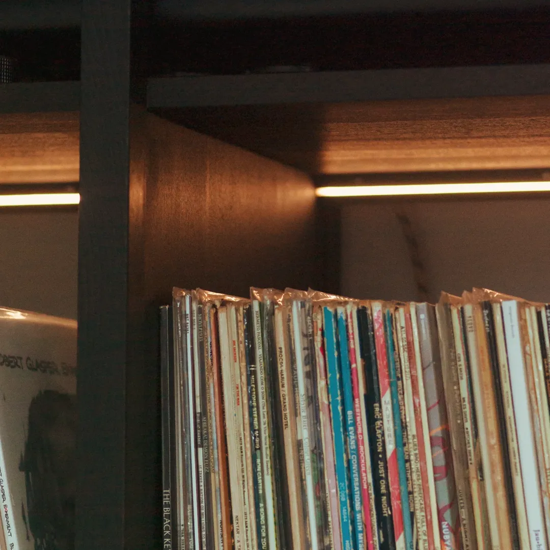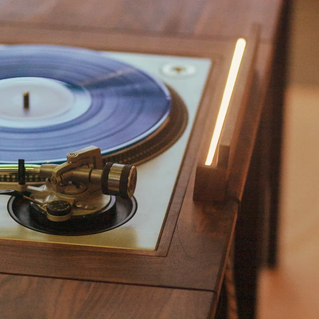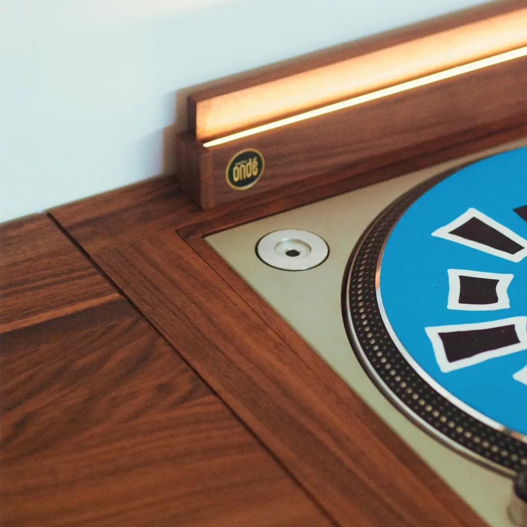 Focus sur l’éclairage intégré à la récente console d’écoute pour vinyles, un des derniers projets sortis de l’atelier.